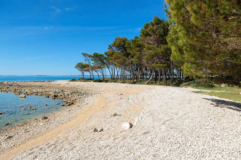Located at the edge of Tisno, Iza Andrije Beach gets its name from the nearby Church of St. Andrew, behind which it quietly unfolds. Though unofficial, it has been praised as one of the most popular nudist beaches in Croatia, drawing naturists with its beautiful setting and relaxed vibe.