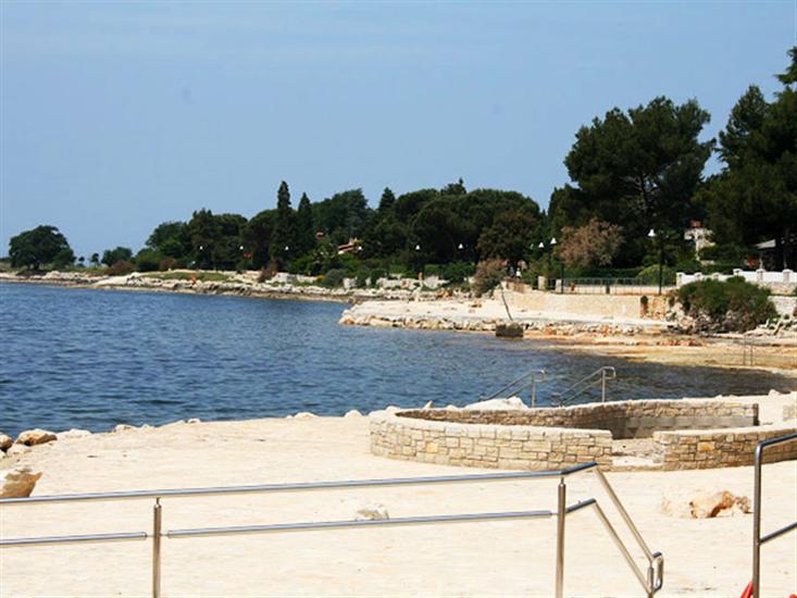 Located 8 km south of Umag near Karigador, Ladin Gaj offers a rocky beach with paved sunbathing areas and stairs into the sea. The southern part is officially naturist, and the beach holds a Blue Flag for cleanliness and quality.