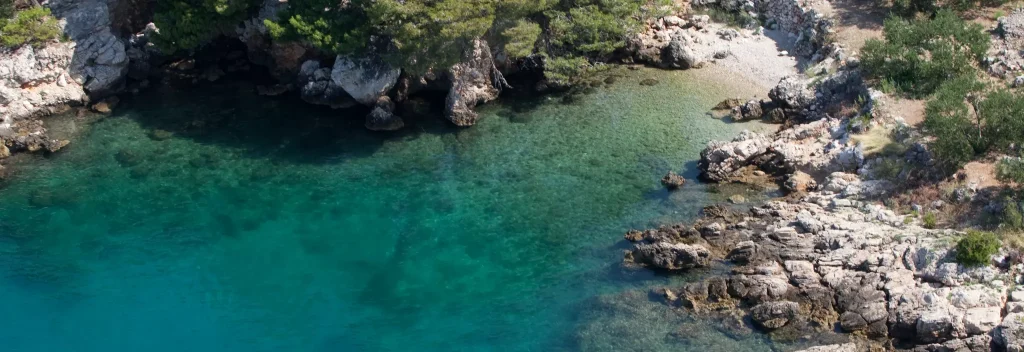 A favorite among seasoned naturists, Grdni Do is a secluded cove near Žuljana, surrounded by pine forest and offering crystal-clear waters. Accessible via a short hike or by boat, this quiet pebble beach offers full privacy, making it ideal for nude sunbathing and swimming. No facilities—pack everything you need.