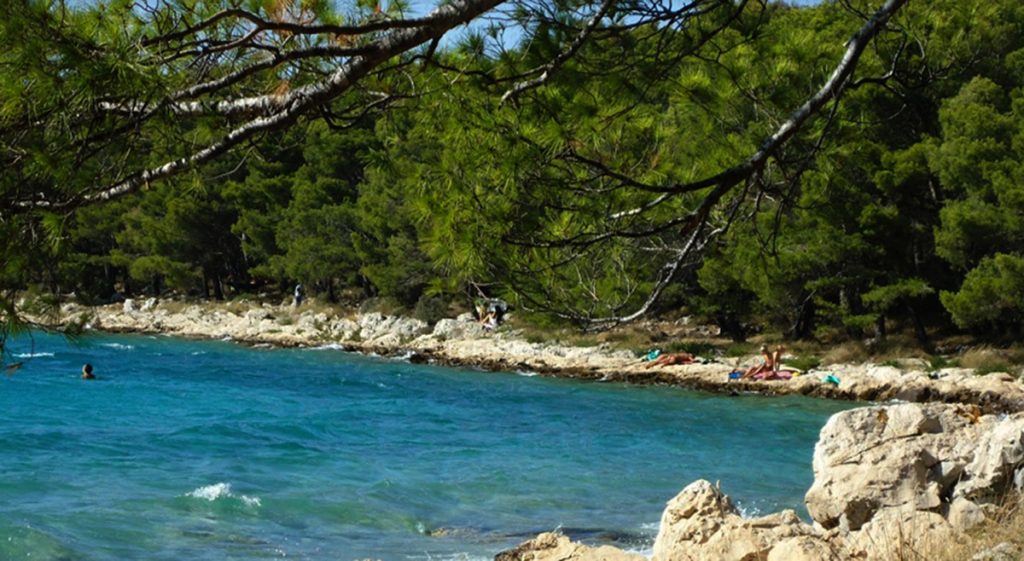 Brač, the largest island in Central Dalmatia, is best known for the famous Zlatni Rat beach in Bol, but it also offers beautiful naturist-friendly spots tucked away from the crowds. The island’s pine-backed coves, rocky cliffs, and calm turquoise bays make it ideal for discreet nude sunbathing. While naturism here is less formal than on Rab or Istria, it’s welcomed in specific areas, especially around Bol.